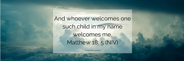 Scripture tells us in Mark 9:36-37 “Whoever welcomes one of these little children in my name welcomes me; and whoever welcomes me does not welcome me but the one who sent me.”