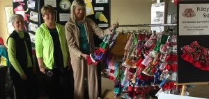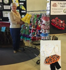 Moms and grandmothers made many little girls happy with their purchase of our wide array of flirty ranch skirts and several pairs of donated mittens which were made from recycled sweaters. Beautiful handmade pillows were also donated and sold.